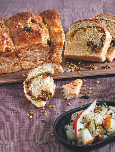 2) Riunite 300 g di farina tipo 1 e 150 g di farina Manitoba in una ciotola e miscelatele con 50 g di zucchero; unite il lievito, 1 uovo sbattuto con 170 ml di latte tiepido e impastate; unite 40 g di burro morbido e 1 cucchiaino di sale e lavorate ancora fino a ottenere una palla di pasta.