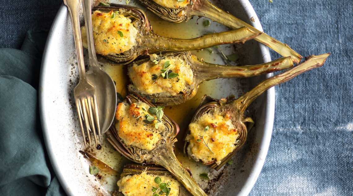 A seconda della ricchezza e degli ingredienti che compongono la farcitura, i carciofi ripieni si prestano a essere inseriti nel menu tra gli antipasti, i primi, i secondi (come nel caso di questi al baccalà) o i contorni. Per sperimentarli in tutte le diverse interpretazioni, serviteli come entrée con crescenza e pecorino, per primo con riso, erbe e yogurt, mentre come secondo piatto potete preparare le mammole (carciofi romaneschi) al forno ripiene di carne e, restando nella cucina capitolina, un contorno di carciofi alla romana, con aglio, prezzemolo e menta.