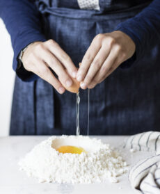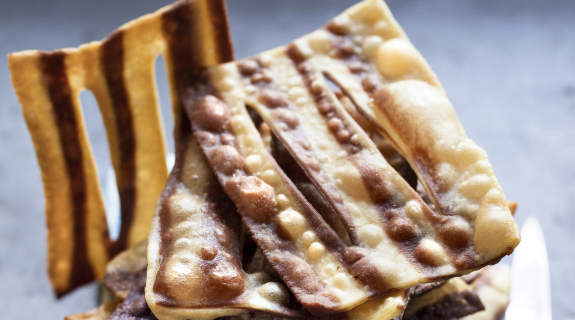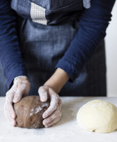 Per la preparazione del doppio impasto, dividete gli ingredienti e setacciate la farina e il cacao, così da ottenere un impasto senza grumi. Aggiungete uova e latte a temperatura ambiente e dopo che avete formato le due palle di impasto lasciatele riposare il tempo richiesto. Gli impasti devono risultare sodi, ma abbastanza elastici per essere stesi facilmente.