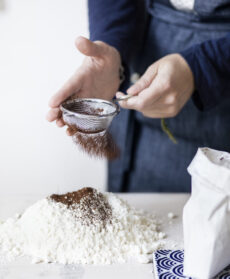Preparate il secondo impasto, aggiungendo agli ingredienti rimasti anche il cacao setacciato.