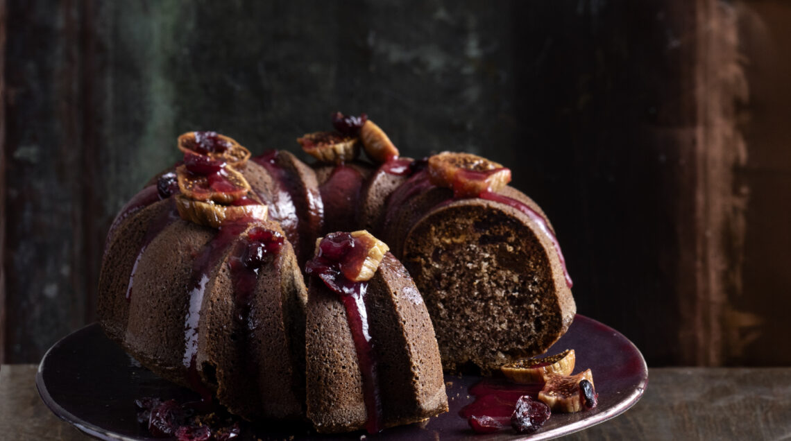 4 Sciogliete la gelatina di ribes in un pentolino con il succo del limone, unite i cranberries e i fichi tenuti da parte tagliati a fettine, mescolate delicatamente, scolateli con una forchetta e disponeteli sul ciambellone. Guarnite con la gelatina rimasta e fate riposare 30 minuti.