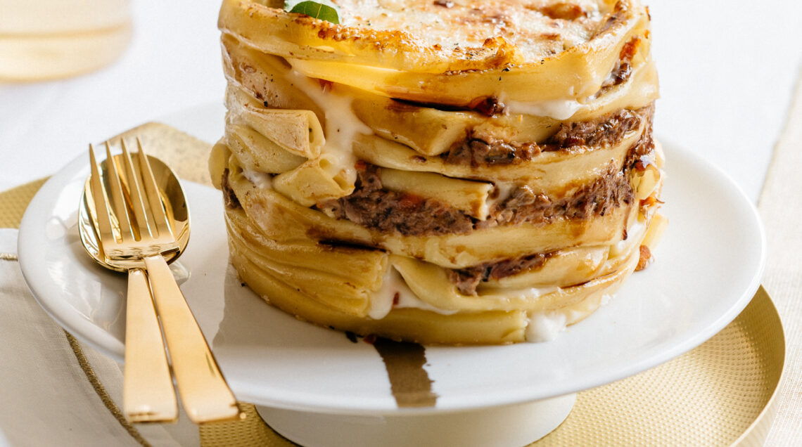 Una ricetta semplice, ma curata in ogni particolare: il ragù cuoce a lungo, la carne diventa tenerissima e sprigiona i profumi del vino pregiato della marinata. La besciamella è home made e il formato di pasta lunga speciale. Un trio fuori dal comune per un piatto da chef, perfetto per grandi e piccole occasioni