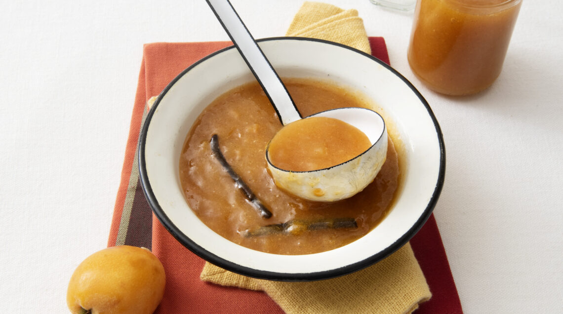 Un frutto dal gusto leggermente acidulo trova in questa ricetta una nuova dolcezza vanigliata. La confettura si accomoda con destrezza tra piatti salati e dolci