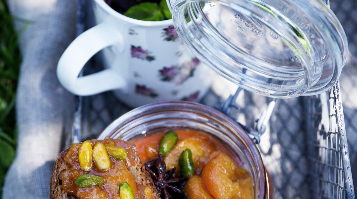 4) Sterilizza e conserva la confettura. Distribuisci la confettura di pesche, zenzero e pistacchi nei vasetti sterilizzati, fermandoti a 1,5 cm dal bordo. Chiudili ermeticamente con i tappi e trasferiscili in una pentola con acqua tiepida alta 5 cm. Porta a bollore e sterilizza per 60 minuti. Preleva i vasetti dalla pentola ancora caldi e girali a testa in giù; lasciali raffreddare bene prima di conservarli in un luogo asciutto e buio della casa. Consuma la confettura entro 3 mesi.