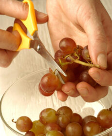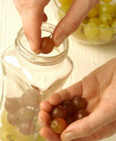 Scegliete uva matura, ma non troppo, con acini sodi e perfettamente sani e staccateli dal grappolo con le forbici, conservando anche un pezzetto di picciolo.