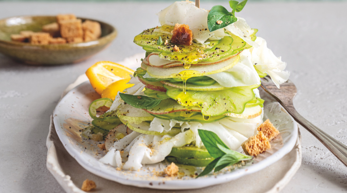 L'insalata cacio e pere è un contorno fresco e sapido a base di formaggio e frutta, da servire con crostini. Perfetto anche a fine pasto