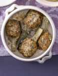 5) Decora i piatti con i filetti di acciuga rimasti e qualche fogliolina di prezzemolo.