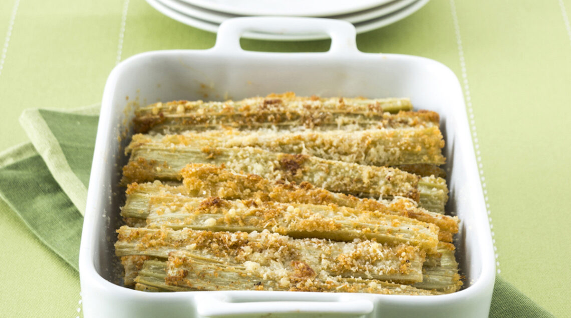 Cardi gratinati al pecorino toscano, un contorno gourmand con prodotti d'eccellenza. Per la tavola delle Feste