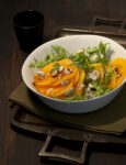 3) Completa e servi. Pela lo spicchio d'aglio e mettilo in un padellino insieme con l'olio, le spezie e una presa di sale; scalda il tutto per un minuto su fuoco basso, poi elimina l'aglio, aggiungi il succo di limone filtrato, spegni il fuoco e versa il