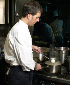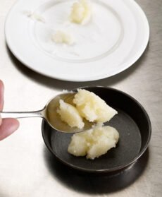 4) Versa metà del composto nella gelatiera e mettila in funzione fino a ottenere una crema gelata. Tieni il resto in caldo. A cottura ultimata sforna le cipolle.