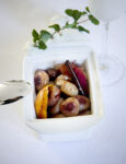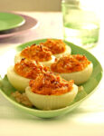 5) Rovescia gli stampini e sforma delicatamente le cipolle sui piatti, metti su ciascuna un cucchiaio di crema gelata e versa attorno un giro di crema calda.