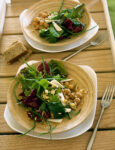 Insalata di grano, fagioli e catalogna, avvolta dal profumo dell'aglio, del porro e dell'alloro è un piatto verace e nutriente; l'insalata di cavolo cappuccio viola con mele Fuji è arricchita da primo sale al sesamo e nocciole, un secondo completo ma light; se amate mescolare ortaggi e verdure ecco l'insalata di cavoli, mele e cranberry.