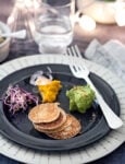 3) In una ciotolina, mescola 4 cucchiai di olio d’oliva, il succo del limone e dell’arancia, sale e pepe. Condisci in un piatto fondo le barbabietole rosse con 1 cucchiaio di questa salsina.