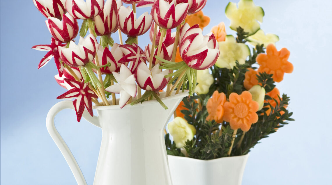 4) Procedi così con gli altri tronchetti fino a formare la mergherite di carote.