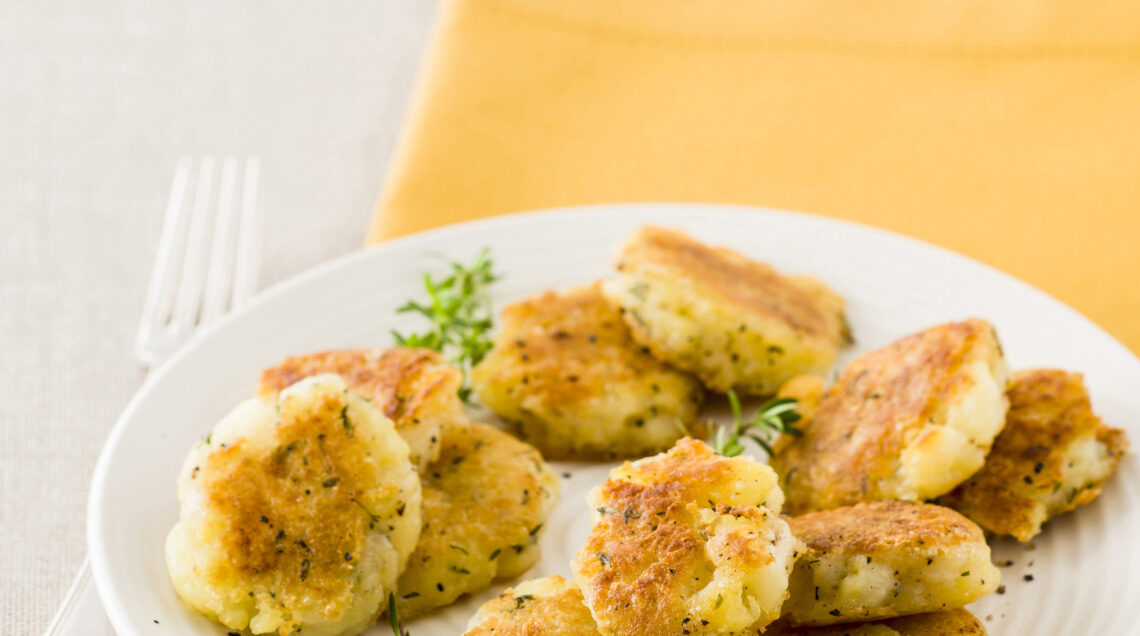 4) Scalda un filo di olio in una padella antiaderente e fai dorare i bocconcini di patate cuocendoli 2-3 minuti per lato. Servili caldi.