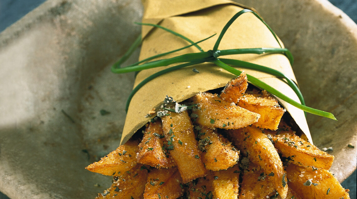 5) Per aromatizzare le patatine fritte passale in un trito di rosmarino, salvia ed erba cipollina (oppure aglio), mescolati con il sale. Servile subito.