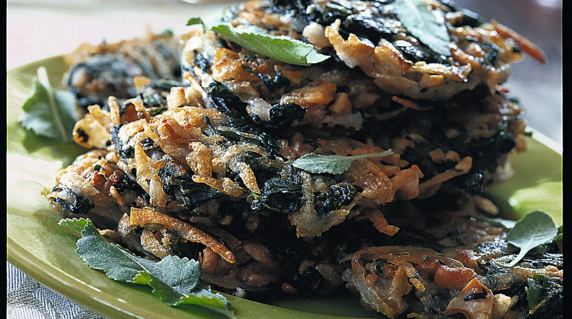 2) Dividi il composto con le mani in tante polpette grosse circa quanto una prugna e cuocile in una padella con 2 cucchiai di olio caldo; girale quando sono dorate sul lato inferiore e schiacciale leggermente con la paletta. Scola le polpette di patate ed erbette sulla carta assorbente e servile ben calde, da sole o con formaggi morbidi e cremosi, freschi e stagionati.