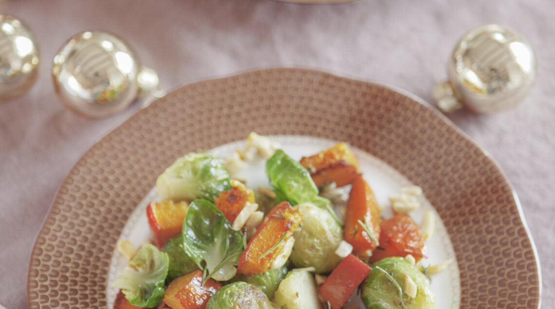1) Monda la zucca, tagliala in grossi pezzi e lessala in acqua bollente salata per 10-15 minuti, finché sarà tenera ma compatta. Intanto, lessa anche i cavolini di Bruxelles e taglia a metà i più grandi.