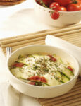 1) Affetta sottilmente e per il lungo le melanzane e le zucchine, condiscile con 2 cucchiai d'olio e un pizzico di sale; disponile su una placca ricoperta di carta da forno e inforna per 10 minuti a 200°, fino a quando sono morbide e leggermente dorate, poi toglile dal forno e mettile da parte. Dividi a metà i pomodori per il lungo, collocali sulla placca ricoperta di carta, con la parte tagliata rivolta verso l'alto; insaporiscili con un cucchiaio d'olio e un pizzico di sale, inforna per 20 minuti a 200°, fino a quando sono ben appassiti, poi toglili dal forno e mettili da parte.