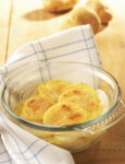 1) Sbuccia il sedano rapa per il gratin al prosciutto e affettalo molto sottile; scottalo nell'acqua bollente salata per 5 minuti, poi scolalo e asciugalo con la carta da cucina.