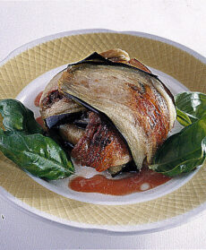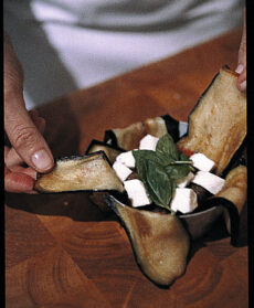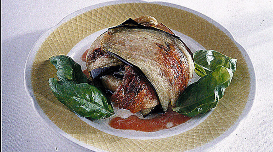 Chiudi con le melanzane che sbordano, passa in forno a 200° per 10 minuti, poi sforma i timballini sui piatti e servi.