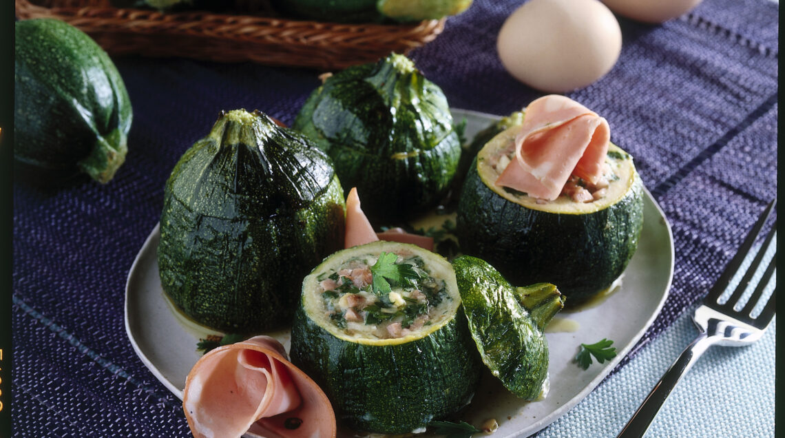 6) Una volta sfornate, lascia raffreddare le zucchine ripiene prima di servirle con una simpatica decorazione a rosellina realizzata con le fettine di mortadella.