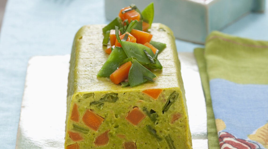4 Versate il composto in uno stampo da plum cake da 750 ml di capacità foderato con carta da forno bagnata e strizzata e cuocete in a bagnomaria in forno caldo a 180° per circa 50 minuti, finché lo sformato risulterà sodo.