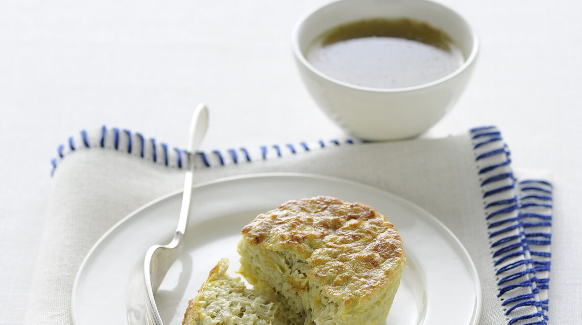 3 Distribuite il mix in 6 stampini da crème caramel imburrati e cuoceteli in forno a bagnomaria a 180° per 30 minuti. Fate fondere 40 g di burro, unite l'aglio sgocciolato, lasciatelo disfare e versate l'olio a filo mescolando.
