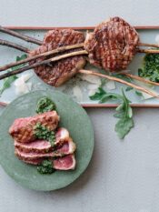 3) Continua la lavorazione della ricetta torta di patate al parmigiano reggiano tritando i pinoli e lavando il basilico. Asciuga bene quest’ultimo e poi tritalo insieme a qualche rametto di maggiorana e a un po' di erba cipollina.