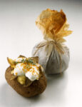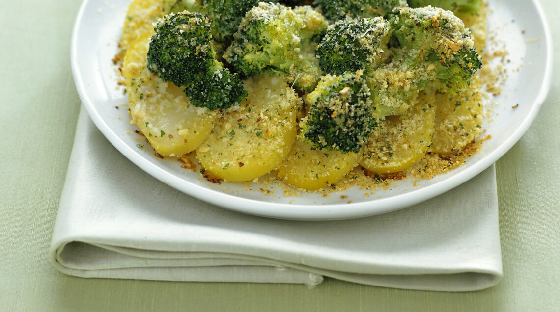 1) Lessa le verdure. Lava le patate e cuocile intere nell'acqua bollente per 40 minuti, poi scolale, sbucciale e lasciale raffreddare. Intanto lava i broccoli e con un coltellino affilato stacca le cimette. Lessale nell'acqua bollente leggermente salata per 15 minuti o finché sono cotte ma al dente e poi scolale bene.