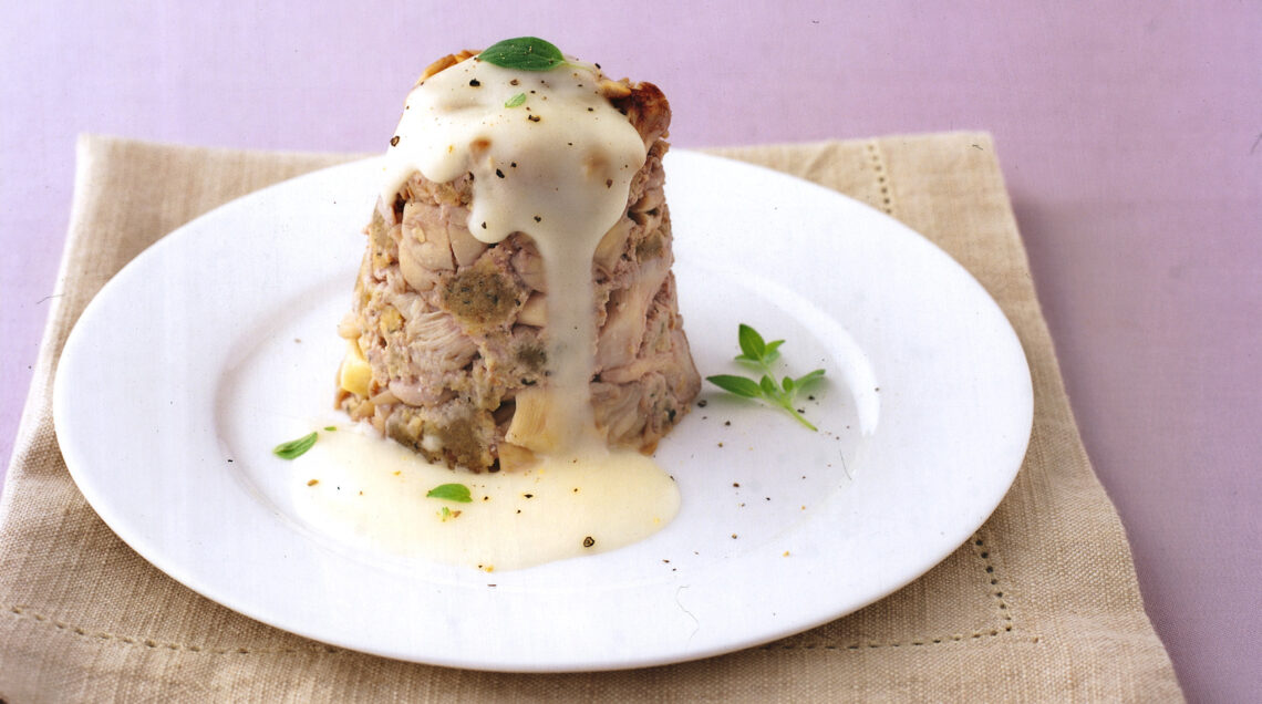 2 Tritate le noci con 2 cucchiai di foglie di origano, 2 rametti di maggiorana, l'aglio. Ungete 4 stampini monoporzione, alternate strati di funghi e di trito di noci e infornate a 200° per circa 15 minuti.