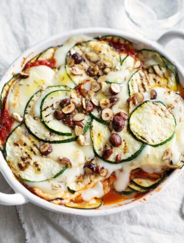 4 Fate uno strato con 1/3 delle zucchine, copritele con 1/3 del ragù e spolverizzate con 1/3 del grana. Aggiungete qualche foglia di basilico e proseguite con 1/3 delle fettine di provola. Ripetete gli strati altre due volte terminando con le fettine di provola e infornate la parmigiana a 180° per circa 20 minuti finché risulterà leggermente dorata. Servitela tiepida.