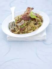 3 Sgusciate le uova in una ciotola e sbattetele con un pizzico di sale; infine versatele a filo nel composto mescolando con una frusta.