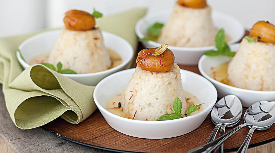 Riso, té, latte di cocco e albicocche secche per un dolce dal delicato sapore esotico, perfetto per tutta la famiglia