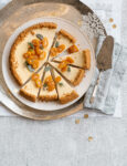3) Diluite la marmellata con 2 cucchiai di acqua calda e stendetela sulla superficie del cheese cake. Levatelo dallo stampo, trasferitelo sul piatto da portata, decorate con le fette di arancia disidratata e servite.