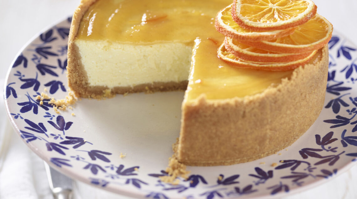 Normalmente gli ingredienti principali per realizzare una cheese cake coi fiocchi sono i biscotti per la base, del formaggo fresco, della gelatina alimentare. Qui ve ne proponiamo una versione in cui si utilizzano invece fiocchi di formaggio fresco, maizena, yogurt greco e la copertura è una dolce confettura di arance.