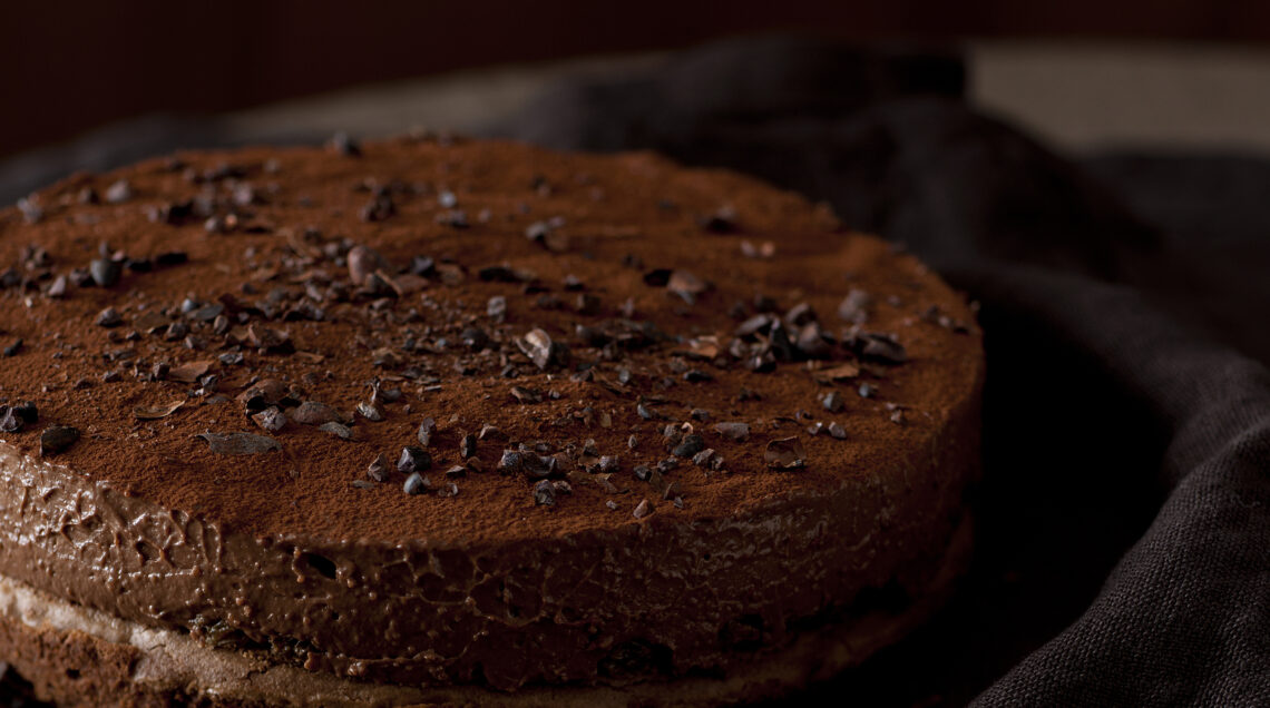 4) Scola e strizza anche l’uvetta, poi distribuiscila in maniera uniforme sulla torta, infine coprila con la crema al cioccolato e lasciala riposare in frigorifero per un’ora. Gusta il brownie con malaga al cioccolato decorato con fave di cacao.