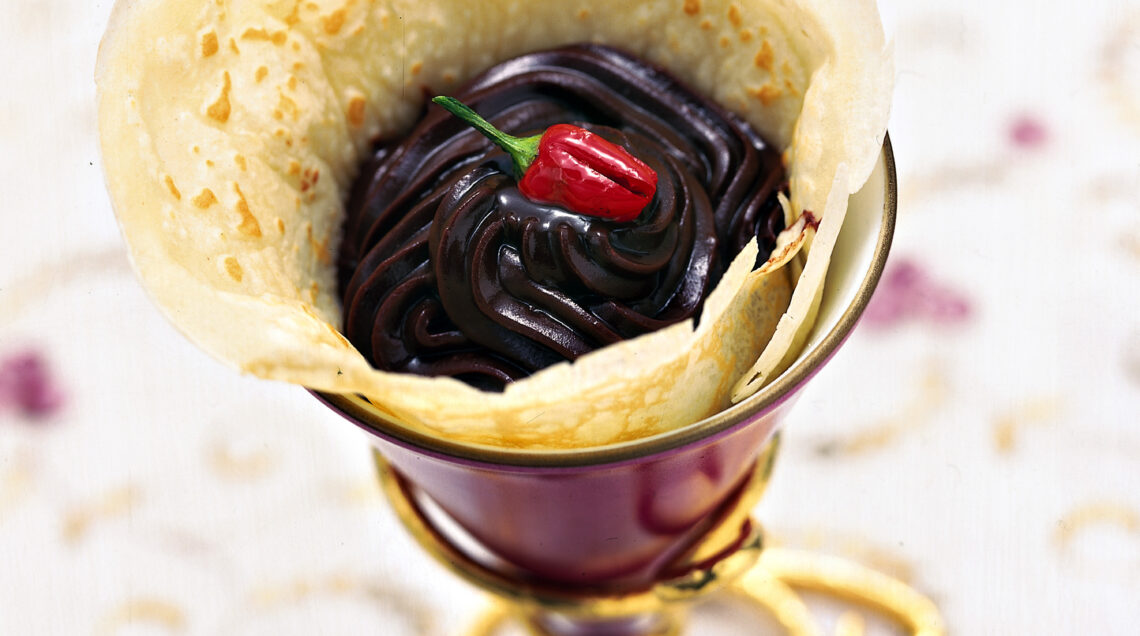 2) Riempi i coni golosi con la crema ganache piccante e gustali subito.