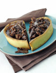 1) Prendi un padellino antiaderente di 18 centimetri di diametro, metti un velo di burro e versa man mano un mestolino di pastella. Cuoci la crepe da entrambi i lati, poi una volta cotta tienila in caldo. Ripeti l’operazione con tutta la pastella, piega tutte le crepe a cono e adagiale in 6 bicchieri.