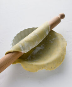 Stendete la pasta in una sfoglia rotonda di 2-3 mm di spessore, foderate fondo e bordi di uno stampo da crostata di 20 cm di diametro ed eliminate l'eccedente.
