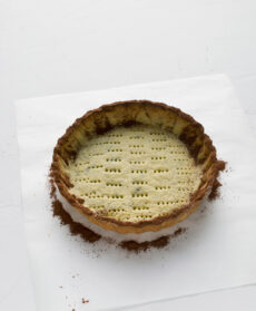 Riunite nel mixer la farina con un pizzico di sale nero, 100 g di burro a dadini e 80 g di zucchero e frullate fino a ottenere un composto a briciole. Unite uovo e tuorlo e frullate finché si forma una palla. Avvolgetela nella pellicola e fatela riposare per 30 minuti in frigo.