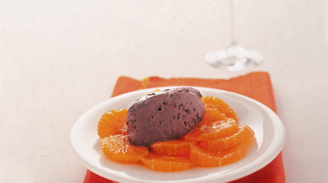 Un dolce al cucchiaio a base di cioccolato e panna, profumato con un liquore pregiato all'arancia. Montate gli albumi a neve perfettamente per rendere il dessert soffice e gonfio.