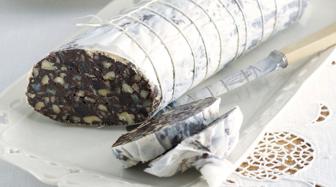 Dolce conosciutissimo e facilissimo da preparare, è a base di cioccolato e biscotti secchi e, come dice il nome, ha la forma di un salame