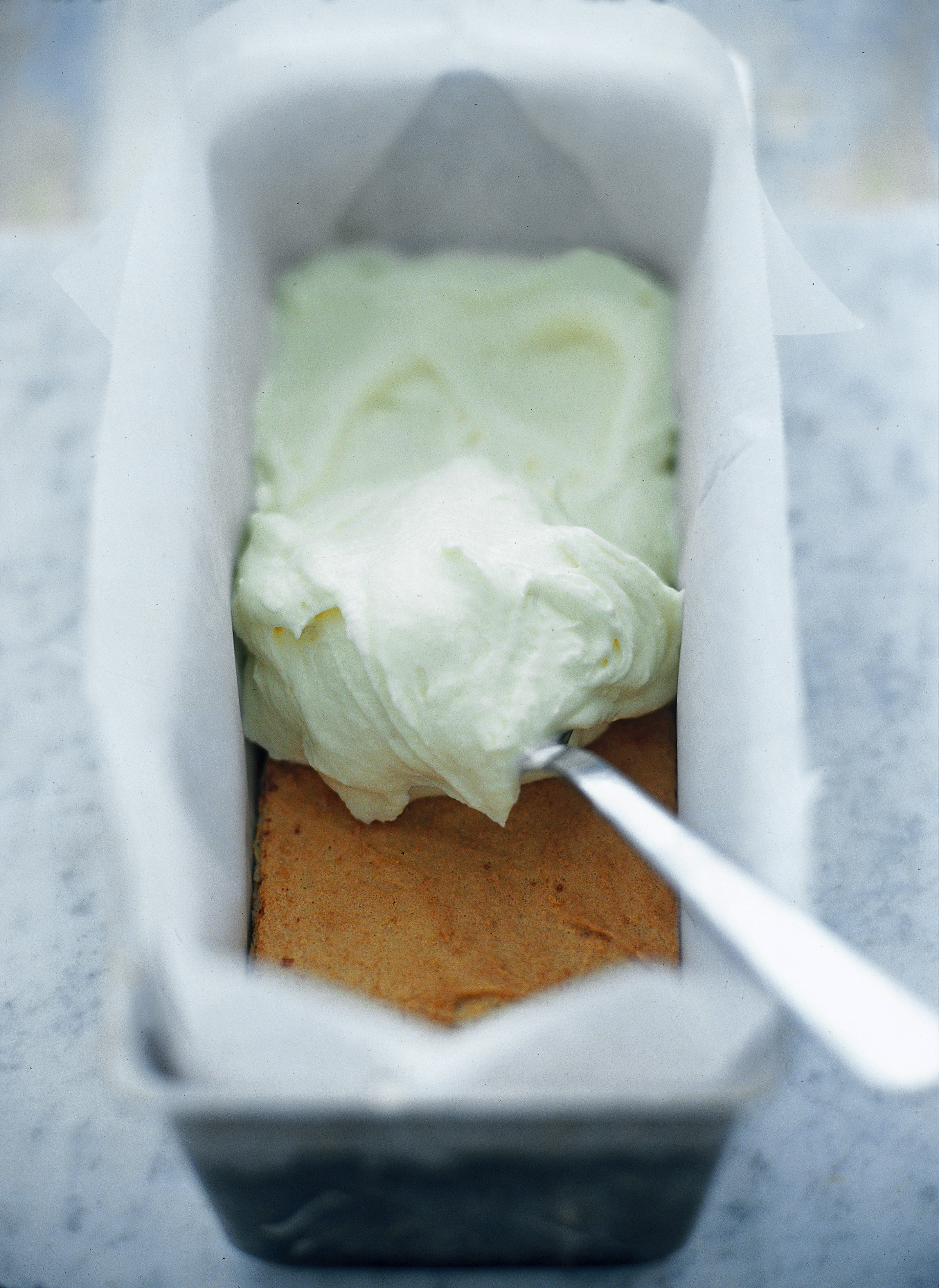 3) Prendi uno stampo da plum cake di 24 centimetri e adagia sul fondo un rettangolo di pasta alle mandorle tagliato in misura.
