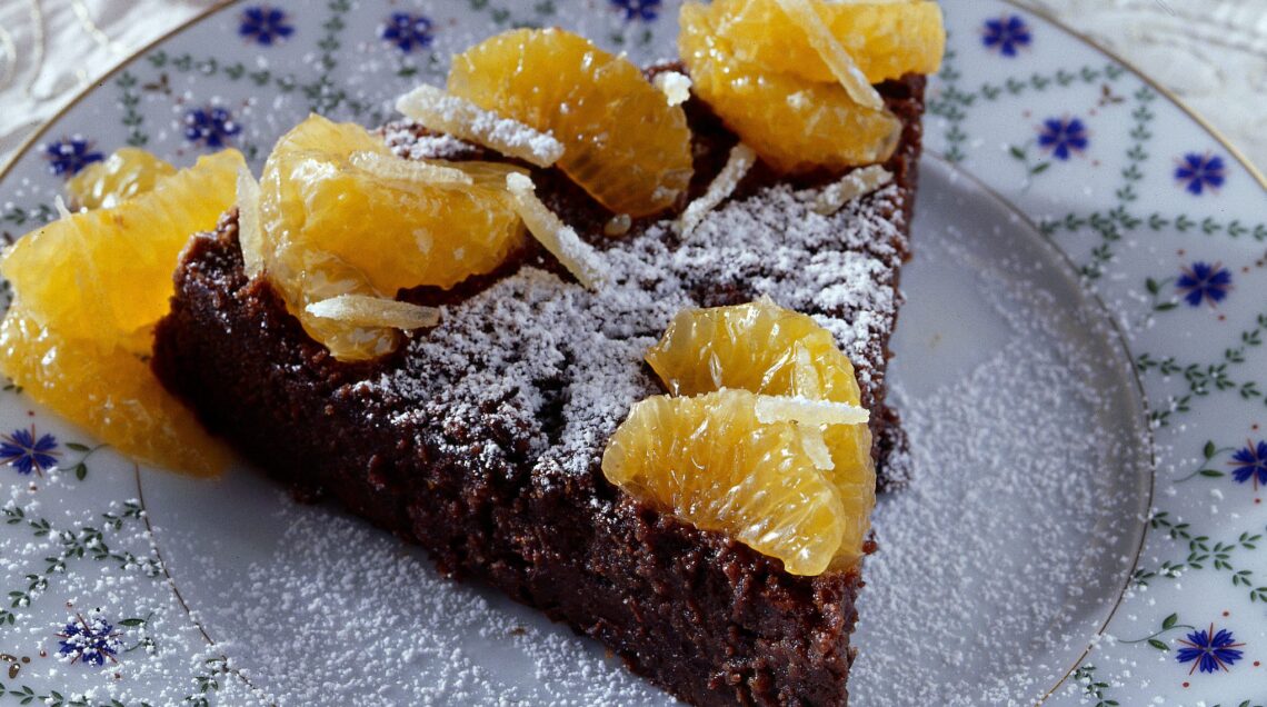 4) Versa l'impasto in uno stampo rivestito con carta da forno del diametro di 18 centimetri e cuocilo a bagnomaria nel forno già caldo per circa 30 minuti; fai raffreddare la torta, elimina la crosta che si è staccata, sformala e servi la torta ai 2 cioccolati e mandarini decorando con spicchi di mandarino pelati al vivo e con una spolverata di zucchero a velo.