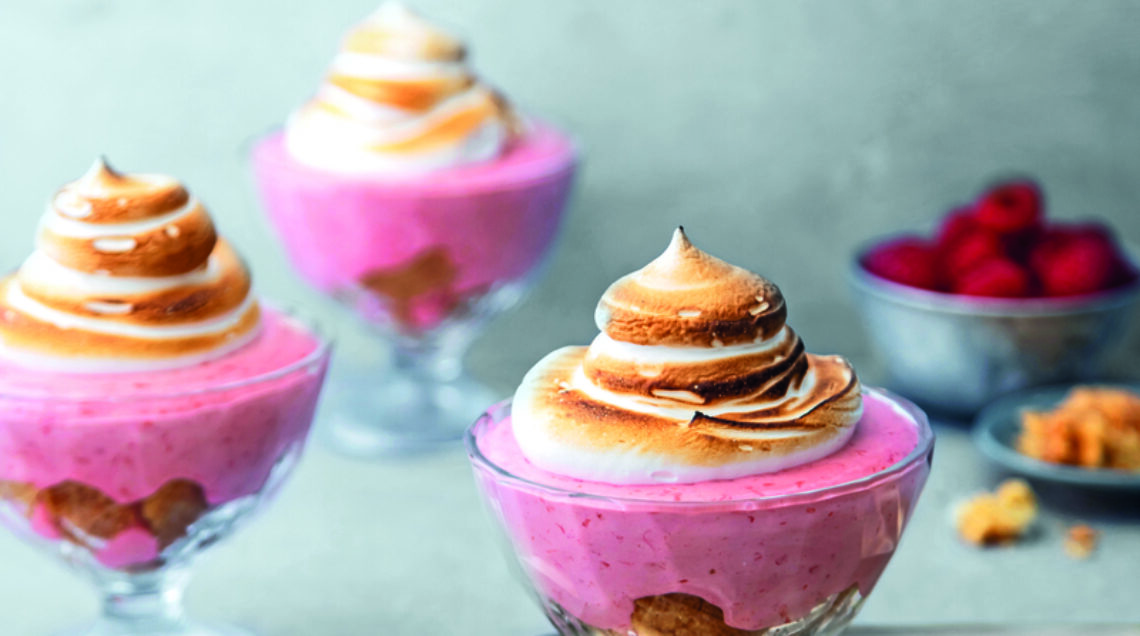 Un dessert al cucchiaio bello e buono, preparato con curd di lamponi e meringa