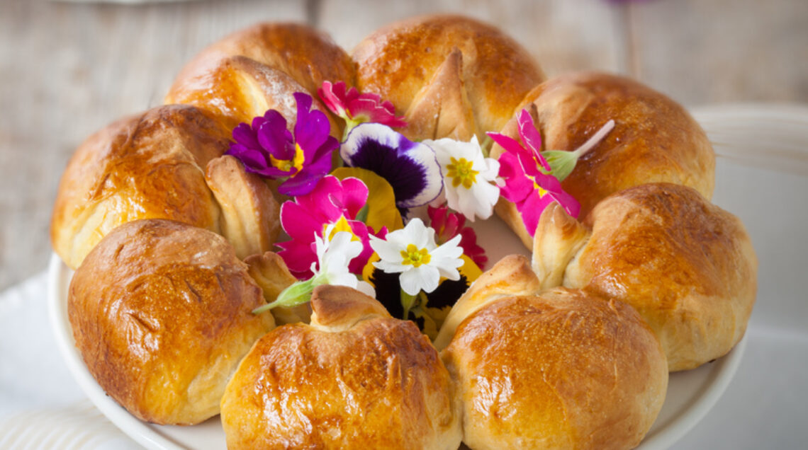 Sgonfiate l'impasto, prelevate 8 porzioni da 50 g circa, formate altrettante palline e mettetevi al centro 2 cucchiaini di crema pasticcera e 1 amarena; richiudete l'impasto sopra il ripieno e sigillate. Stendete l'impasto rimasto in un disco di 18 cm. Adagiatelo su una placca ricoperta di carta da forno e sistemate le palline ripiene lungo il bordo, distanziate. Partendo dal centro, incidete il disco in 8 triangoli, ripiegate le punte sulle palline e fissatele; incidetele con un decoro a foglia e fate lievitare per 30 minuti.
