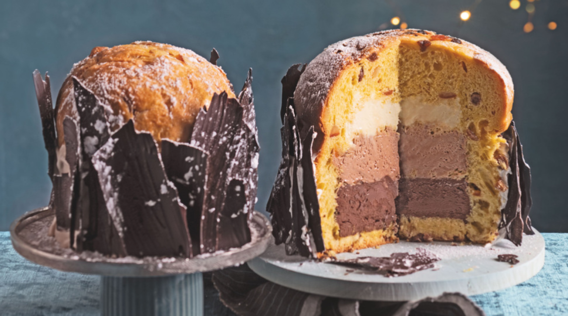 Panettone tradizionale alle tre mousse con falde di cioccolato