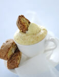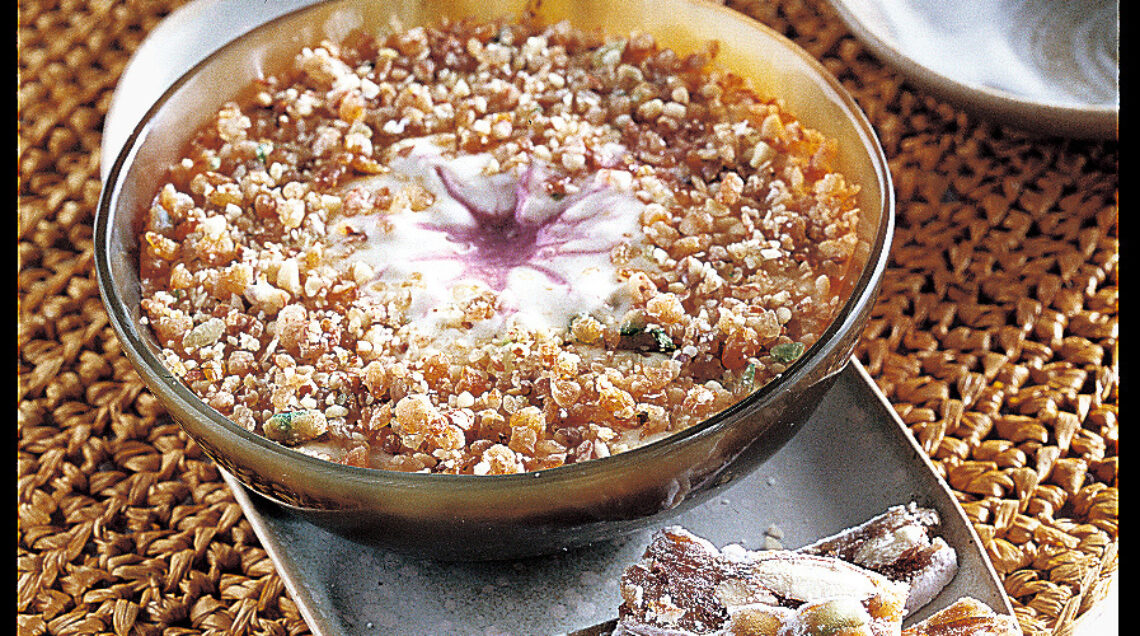 2) Versa la crema ottenuta in 4 coppette, mettila in freezer e lasciala raffreddare per una decina di minuti. Cospargi la superficie con il panforte avanzato, poi, con il dorso di un cucchiaio bagnato fai una fossetta al centro della crema e versaci il Porto rimasto. Servi subito ben freddo.