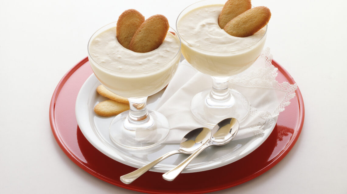 3) Servi la crema al formaggio. Distribuisci nelle ciotole e servi la crema di mascarpone senza uova se ti piace, con una grattata di buccia di arancia.